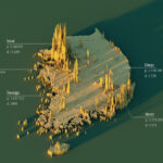 Inspired by this Aerialod tutorial, I created this population density map of South Korea. I used population data from WorldPop for the density map and from KOSIS for the stats.
